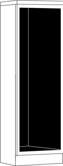 Ce modèle est proposé en coloris noir mat. Il est équipé d'une serrure et d'un éclairage intérieur par LED blanc chaud ou froid sur toute la hauteur.
