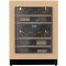 Cave à vin de service 2 températures encastrable sous plan à façade habillable, réglable de 5 à 12°C en haut et de 12 à 20°C en bas de capacité 47 bouteilles (22 bouteilles dans la zone supérieure et 25 bouteilles dans la zone inférieure).