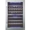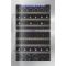 Cette cave est équipée d'une porte vitrée réversible traitée anti-UV, d'un cadre de porte en inox à la finition très soignée, de clayettes bois à fronton inox, ainsi qu'un éclairage intérieur à LED.