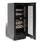 Cette cave est équipée d'une porte vitrée réversible, d'un cadre de porte dark inox à la finition très soignée, de clayettes bois à fronton inox noir, ainsi qu'un éclairage intérieur LED personnalisable (bleu, orange, blanc) et d’un écran TFT couleur avec contrôle sensitif.