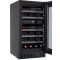 Cette cave est équipée d'une porte vitrée réversible, d'un cadre de porte noir à la finition très soignée, de 5 clayettes bois finition black inox, ainsi qu'un éclairage intérieur LED 3 couleurs sur les côtés.