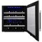 Cave à vin multi-usages 2 températures de service, encastrable en colonne, réglable en haut de 5 à 12°C et en bas de 12 à 22°C, d'une capacité de 27 bouteilles.