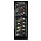 Grâce à un système exclusif de clayettes de présentation coulissantes, cette cave à vin offre l'accès à l'intégralité des 104 bouteilles stockées dans la cave et permet d'exposer , ainsi qu'un éclairage intérieur à LED vertical sur toute la hauteur.
