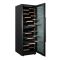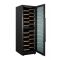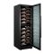 Cette cave est équipée d'une porte vitrée réversible, avec cadre noir et poignée métal.
