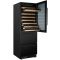 Cette cave est équipée d'une porte vitrée réversible, d'un cadre de porte noir à la finition très soignée, de clayettes bois ainsi qu'un éclairage intérieur à LED (plafonnier et sur les côtés), d’un écran TFT couleur avec contrôle sensitif.