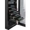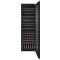 Cette cave est équipée d'une porte vitrée réversible, d'un cadre de porte noir à la finition très soignée, de clayettes bois finition black inox, ainsi qu'un éclairage intérieur LED personnalisable sur les côtés (bleu, orange, blanc) et d’un écran TFT couleur avec contrôle sensitif.