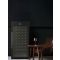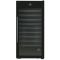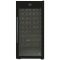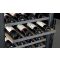 Cette cave est équipée d'une porte vitrée noire avec ouverture à droite et poignée externe noire, d'un cadre de porte vitré noir, de 9 clayettes coulissantes en bois fronton inox noir, ainsi qu'un éclairage intérieur à LED blanc.