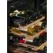 La cave est équipée de 4 clayettes coulissantes en bois et d'une clayette de présentation fixe en bois.