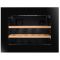 Ce modèle est équipé d'une porte vitrée réversible triple-vitrage gris en verre trempé traité anti-UV. La porte avec encadrement noir est dépourvue de poignée. L'ouverture s'effectue au moyen d'un système "push-pull" électronique, nécessitant simplement une légère pression sur la porte. Le design de la cave est renforcé par un éclairage intérieur à LED modulable en couleur (blanc froid, blanc chaud et ambré) et en intensité, commandé par interrupteur.