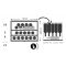 Cave à vin Mono-Température de service encastrable en colonne auto-ventilée, réglable entre 5° et 20°C et d'une capacité maximale de 21 bouteilles, soit de 52 L.