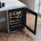 Cette cave est équipée d'une porte double vitrage en verre noir réversible anti-UV, d'un cadre de porte noir satiné, de clayettes bois, ainsi qu'un éclairage intérieur à LED.