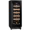 Cette cave est équipée d'une porte 3 vitrée (verre trempé) réversible traitée anti-UV, d'un cadre de porte en verre noir à la finition très soignée, de 5 clayettes en bois coulissantes ainsi qu'un éclairage intérieur à LED blanc.