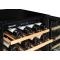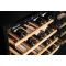 Cette cave est équipée d'une porte vitrée réversible traitée anti-UV, d'un cadre de porte en verre noir, de 5 clayettes semi-coulissantes en bois, 1 demi-clayette fixe, 1 filtre à charbons actifs ainsi qu'un éclairage intérieur à LED avec interrupteur.