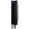 Cette cave est équipée d'une porte vitrée triple vitrage réversible traitée anti-UV, avec un cadre de porte full glass noir à la finition très soignée. Elle est livrée avec une poignée noire et une poignée en inox pour s'adapter au mieux à votre intérieur. Un éclairage intérieur à LED bleu et l'un affichage digital à LED bleu apportent une touche de modernité