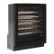 Cette cave est équipée d'une porte vitrée réversible, d'un cadre de porte noir à la finition très soignée, de clayettes bois à fronton inox noir, ainsi qu'un éclairage intérieur LED personnalisable (bleu, orange, blanc) et d’un écran avec contrôle sensitif.