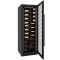Cave à vin mono-température de service, réglable de 5 à 22°C, d'une capacité de 132 bouteilles présentées de manière très originale et esthétique (22 bouteilles avec étiquettes visibles).