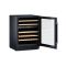 La porte est vitrée (triple-vitrage traité anti-UV), avec un encadrement noir et inox soigné et une poignée en inox. Un éclairage de présentation permet de mettre en valeur vos bouteilles de manière élégante. La température est indiquée sur un écran digital et contrôlée par des touches tactiles.
