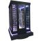 Un coté est équipé de 6 supports suspendus chromés de 13 bouteilles. L'autre coté est équipé de 13 grandes clayettes bois. Le Fond est équipé de 11 petites clayettes bois. Teinte du bois identique à la finition extérieure. Capacité 350 bouteilles