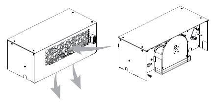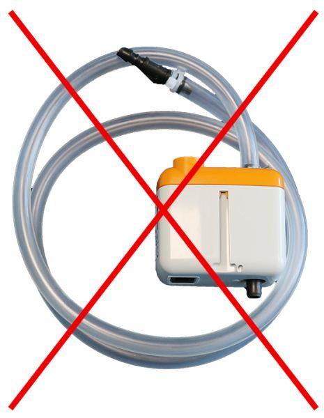 En option : Si l'évacuation des condensats par gravité n'est pas possible, une pompe de relevage peut-être intégrée à l'évaporateur et permet d'évacuer l'eau de condensation à travers un tuyau vers le réseau des eaux usées, un égout, etc..