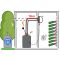 En option : Si l'évacuation des condensats par gravité n'est pas possible, une pompe de relevage peut-être intégrée à l'évaporateur et permet d'évacuer l'eau de condensation à travers un tuyau vers le réseau des eaux usées, un égout, etc..