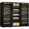 Combiné de deux caves à vin mono-température de vieillissement ou de service et d'une cave à vin multi-usages 3 températures. Cette version est équipée de 3 portes double vitrage argon traité anti-UV Full Glass.