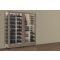 - 112 bouteilles, inclinées sur des tubes en aluminium, dont 64 sont inclinées vers l’avant étiquette visible, et 48 sont inclinées vers l’arrière, non-visibles mais accessibles. Le diamètre maximum des bouteilles est de 120mm, ce qui permet d’accueillir la plupart des formats 75cl et magnum de toutes les régions (Bordeaux, Bourgogne, Champagne).