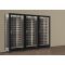 Présentation horizontale : ce modèle peut accueillir jusqu’à 360 bouteilles, couchées sur des tubes en aluminium, dans le sens de la largeur, ce qui laisse apparaître l’étiquette de la bouteille placée à l’avant. Au total, 90 bouteilles sont exposées avec l’étiquette visible. Le diamètre maximum des bouteilles est de 90mm, ce qui permet d’accueillir la plupart des formats 75cl standard (Bordeaux, Bourgogne, Champagne).