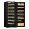 Combiné enchassable d'une cave à vin mono-température de vieillissement ou de service et d'une cave à vin multi-usages 3 températures. Cette version est équipée de 2 portes double vitrage argon traité anti-UV Full Glass.