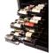 Grâce à un système exclusif de clayettes de présentation coulissantes, ce modèle offre l'accès à l'intégralité des 384 bouteilles stockées dans la cave et permet de les présenter de manière originale et esthétique (64 bouteilles avec étiquettes visibles).