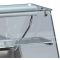 Côté client les produits sont présentés derrière un vitrage droit, sans accès. Côté vendeur, des vitres coulissantes en plexiglas permettent d'accéder aux produits. Un plan de travail en inox de 380mm de profondeur permet un stockage temporaire des produits ou des opérations de découpe et/ou d'emballage.