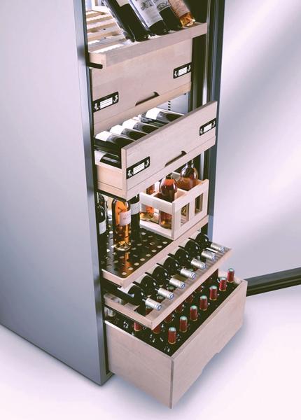 Il est donc également important de tenir compte de l’équipement souhaité dans le choix de votre cave à vin. A titre d’exemple, un modèle annoncé avec une capacité maximale de 230 bouteilles bordelaises réparties sur 4 clayettes, verra sa capacité diminuer à 170 bouteilles avec un équipement de 13 clayettes coulissantes.