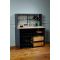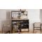 Dans cette configuration de base, le meuble comporte 12 tablettes droites, 3 tablettes métalliques noires et un rack à verres.