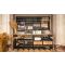 Dans cette configuration de base, le meuble comporte 28 tablettes droites, 4 tablettes métalliques noires et un rack à verres.