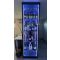 Meuble dit "sec" contemporain sur-mesure de présentation de bouteilles debouts. Finition extérieur en aggloméré plaqué chêne teinté vernis à la demande du client. Finition intérieur avec fond miroir teinté gris, éclairage 4 leds couleur avant et arrière toute hauteur commandé par télécommande.