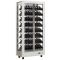 Présentation inclinée : cette vitrine peut accueillir jusqu’à 112 bouteilles, inclinées sur des tubes en aluminium, dont 64 sont inclinées vers l’avant et 48 sont inclinées vers l’arrière : 100 % des bouteilles sont directement accessibles et 100 % des étiquettes sont visibles. De plus, le diamètre maximum des bouteilles est de 120mm, ce qui permet d’accueillir la plupart des formats 75cl et magnum de toutes les régions (Bordeaux, Bourgogne, Champagne).