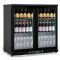 Cette vitrine réfrigérée horizontale, réglable entre +2° et +8°C, permet de stocker jusqu'à 225 canettes ou bouteilles de 33cl, accessibles facilement grâce à 2 portes battantes vitrées équipées d'une serrure.